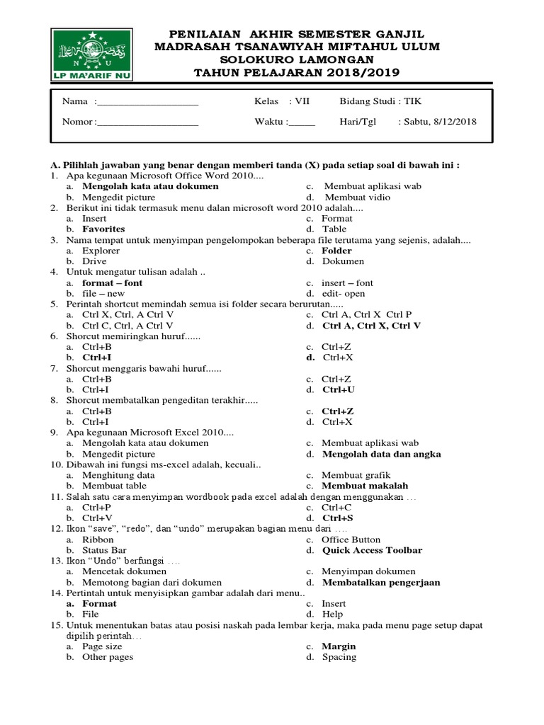 Soal dan kunci jawaban UTS SIMDIG SEMESTER 1 20192020 1. Nama tempat untuk menyimpan pengelompokan beberapa file terutama yang sejenis adalah - 25854086. Istilah ini sering digunakan dalam bidang kearsipan dan komputer.